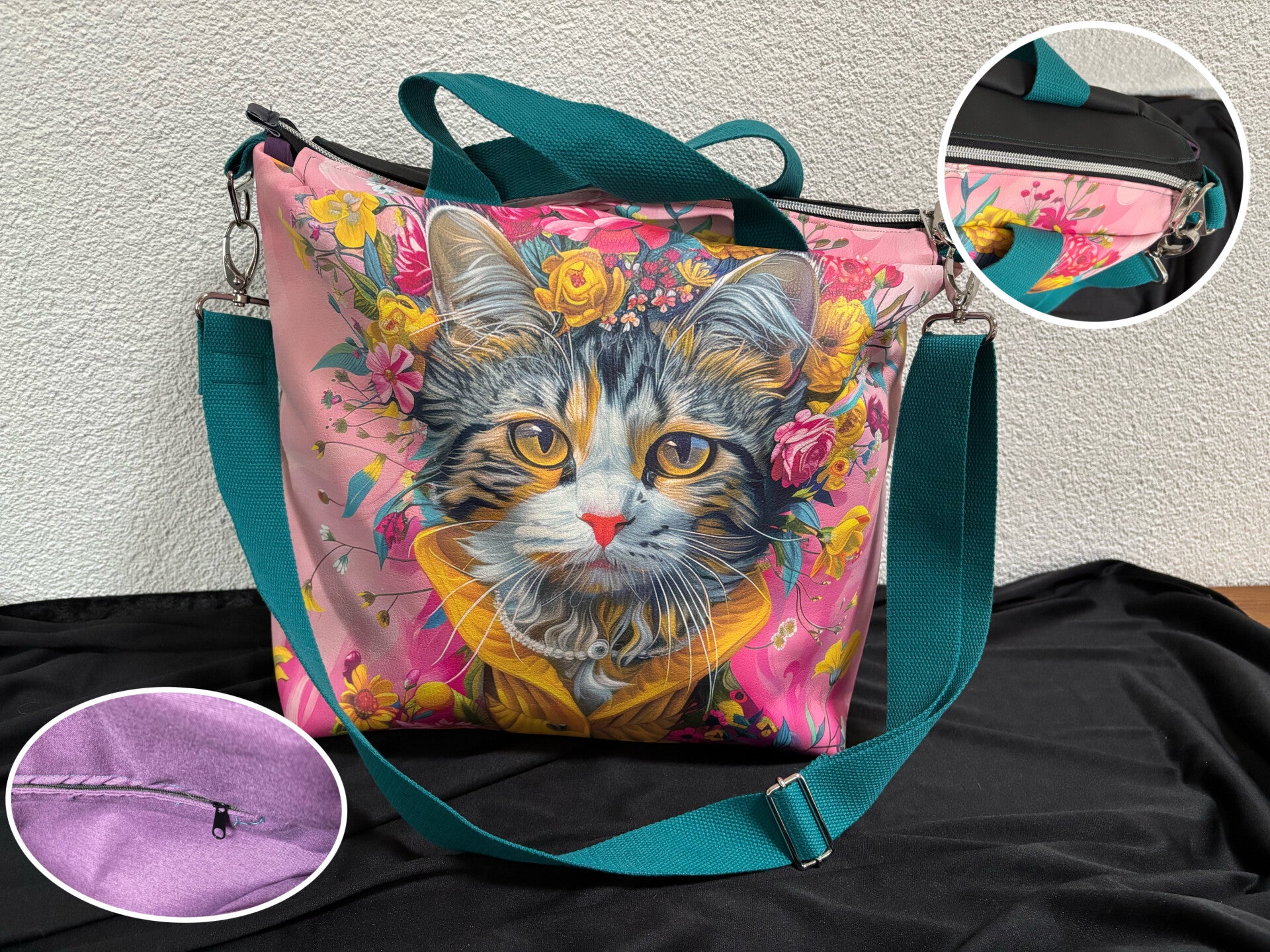 Einzelstück - Umhängetasche „Blumen-Katze“